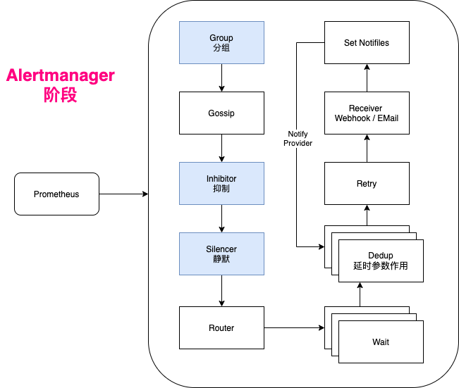 - 沉默和抑制 根据配置直接沉默或者在告警阶段抑制某些告警信息的发送。